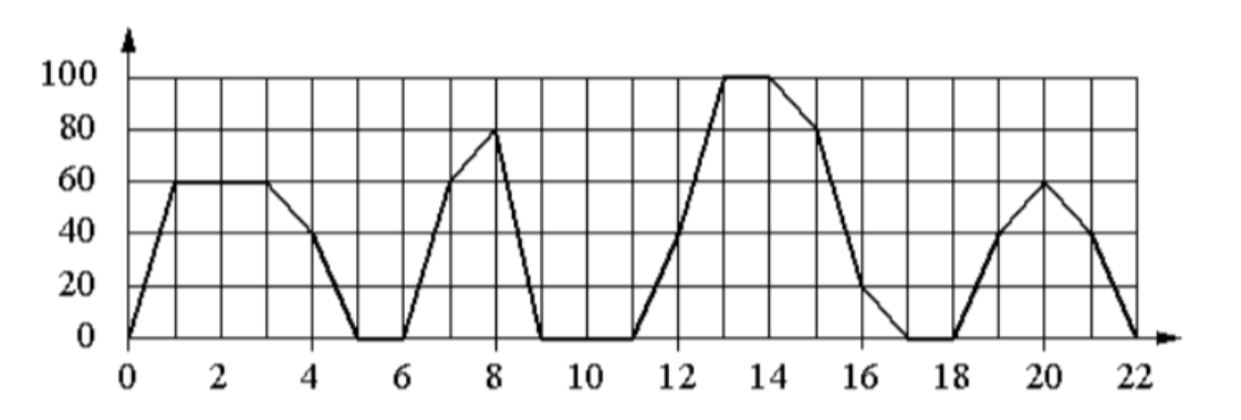 Пользуясь графиком, поставьте в соответствие каждому интервалу времени характеристику движения автобуса на этом интервале.