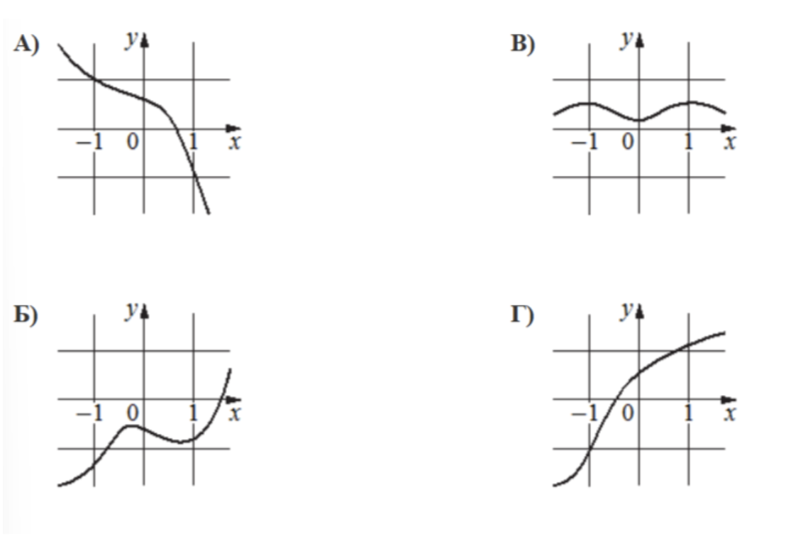 Установите соответствие между графиками функций и характеристиками этих функций на отрезке [− 1; 1].