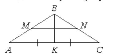 В равнобедренном треугольнике ABC с основанием AC медиана BK = 6, отрезок MN, соединяющий середины боковых сторон, равен 8. Найдите боковую сторону AB.