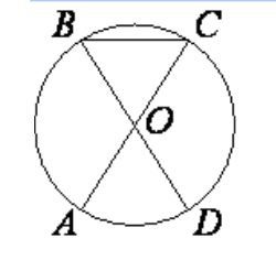 В окружности с центром O, AC и BD – диаметры. Центральный угол AOD равен 50∘ . Найдите угол ACB . Ответ дайте в градусах.