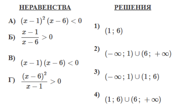 из решений в правом столбце. Установите соответствие между неравенствами и их решениями.