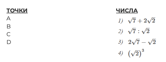 Каждой точке соответствует одно из чисел в правом столбце. Установите соответствие между указанными точками и числами.