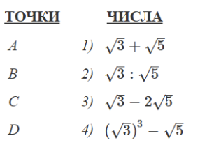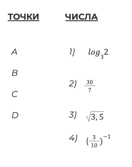 В таблице для каждой точки укажите номер соответствующего числа.