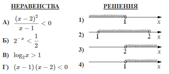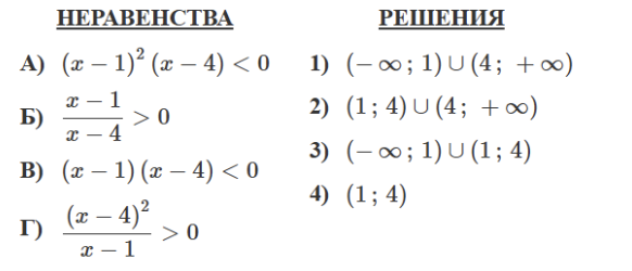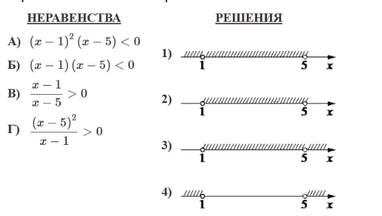 Каждому из четырёх неравенств в левом столбце соответствует одно из решений в правом столбце. Установите соответствие между неравенствами и их решениями.