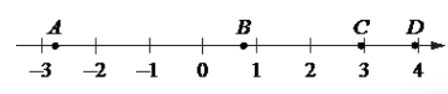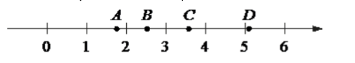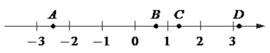 На координатной прямой отмечены точки 𝐴 , 𝐵 , 𝐶 и 𝐷 .