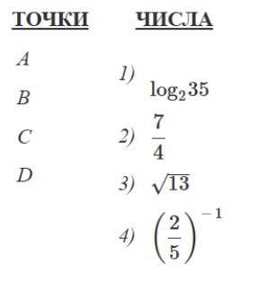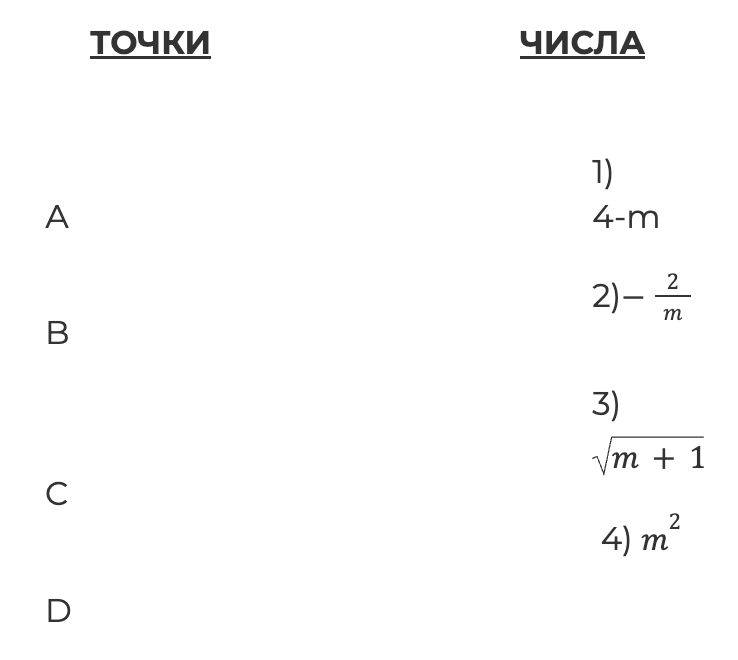 Установите соответствие между указанными точками и числами в правом столбце, которые им соответствуют.