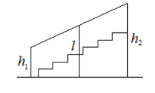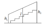 Перила лестницы дачного дома для надёжности укреплены посередине вертикальным столбом. Найдите высоту l этого столба, если наименьшая высота h1 перил равна 1,1 м, а наибольшая высота h2 равна 1,9 м. Ответ дайте в метрах.