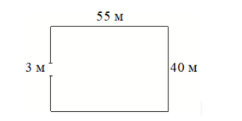 Участок земли имеет прямоугольную форму. Стороны прямоугольника равны 40 м и 55 м. Найдите длину забора (в метрах), которым нужно огородить участок, предусмотрев проезд шириной 3 м.