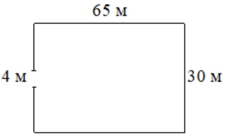 Участок земли имеет прямоугольную форму. Стороны прямоугольника равны 30 м и 65 м. Найдите длину забора (в метрах), которым нужно огородить участок, предусмотрев проезд шириной 4 м