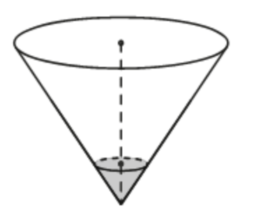 В сосуде, имеющем форму конуса, уровень жидкости достигает 1/3 высоты. Объём сосуда равен 540 мл. Найдите объём налитой жидкости. Ответ дайте в миллилитрах.
