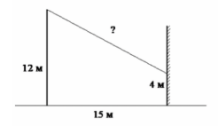 От столба высотой 12 м к дому натянут провод, который крепится на стене дома на высоте 4 м от земли (см. рисунок). Расстояние от дома до столба 15 м. Найдите длину провода. Ответ дайте в метрах.