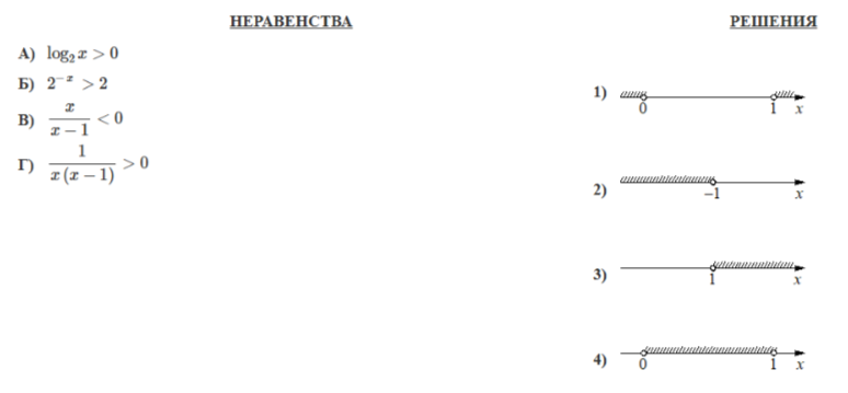 Каждому из четырёх неравенств в левом столбце соответствует его решение в правом столбце. Установите соответствие между неравенствами и их решениями.