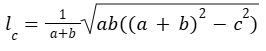 Длина биссектрисы lc, проведённой к стороне c треугольника со сторонами a, b и c, вычисляется по формуле