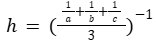 Среднее гармоническое трёх чисел a, b и c вычисляется по формуле
