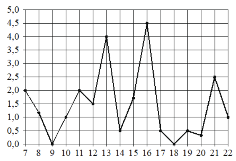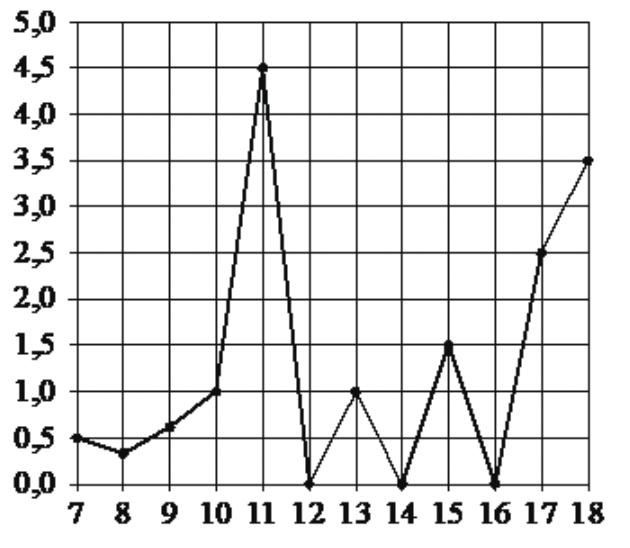 На рисунке жирными точками показано суточное количество осадков, выпадавших в Мурманске с 7 по 22 ноября 1995 года. По горизонтали указаны числа месяца, по вертикали — количество осадков, выпавших в соответствующий день (в миллиметрах). Для наглядности жирные точки на рисунке соединены линиями.