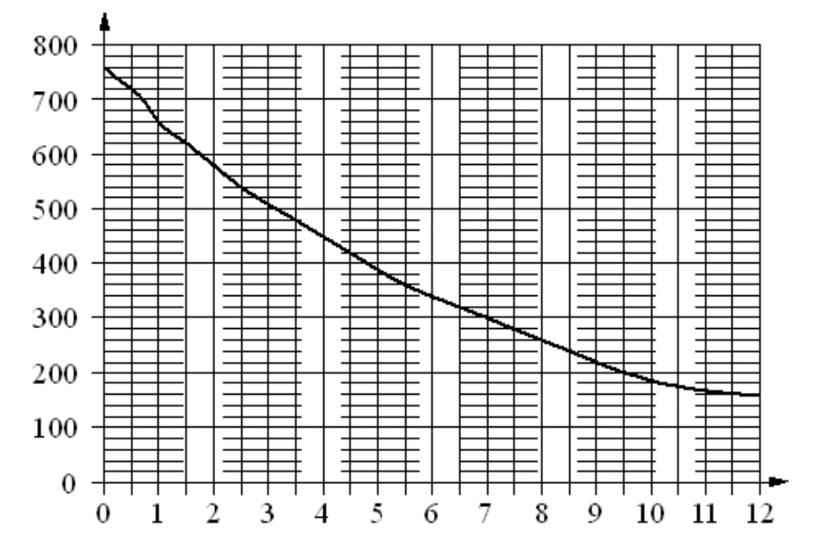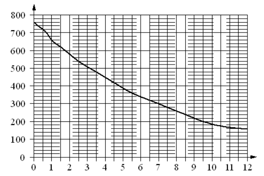 На графике изображена зависимость атмосферного давления от высоты над уровнем моря. На горизонтальной оси отмечена высота над уровнем моря в километрах, на вертикальной — давление в миллиметрах ртутного столба.