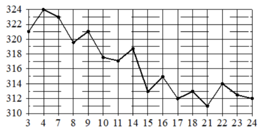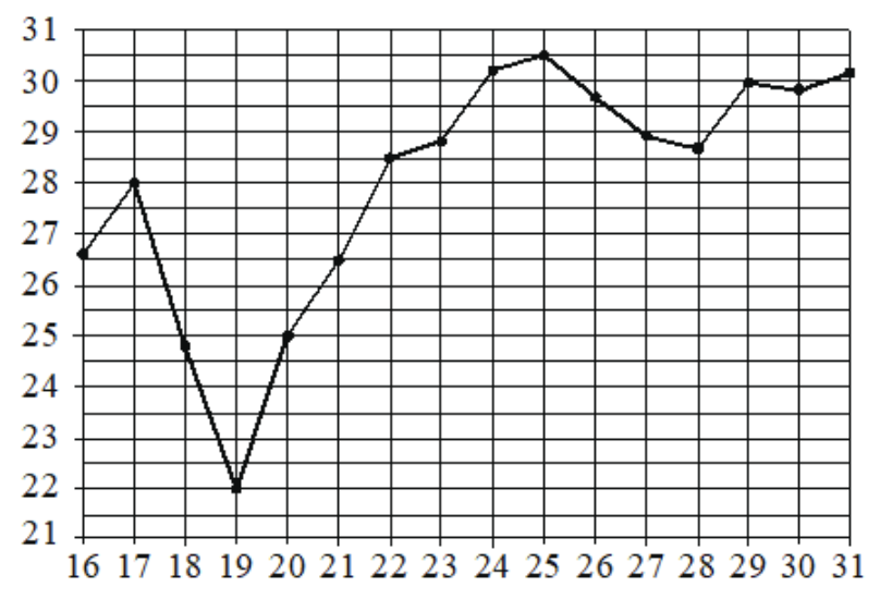 На рисунке жирными точками показана среднесуточная температура воздуха в Нижнем Новгороде каждый день с 16 по 31 июля 2010 года. По горизонтали указаны числа месяца, по вертикали — температура