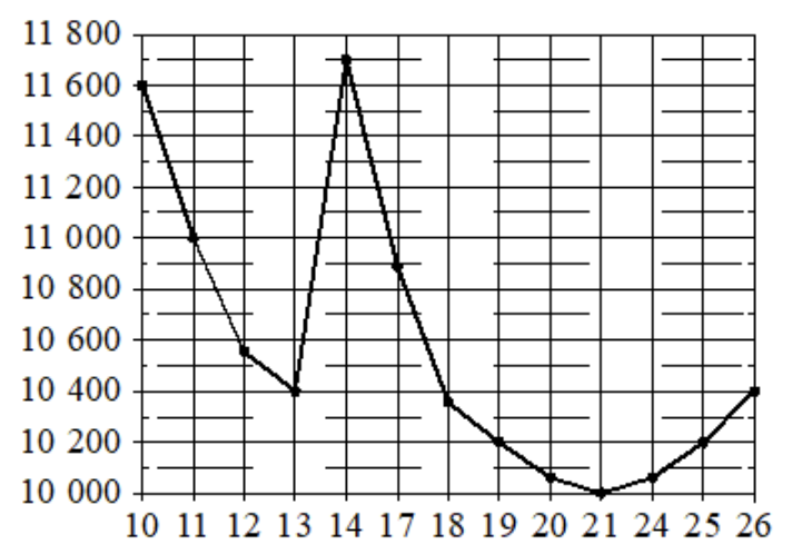 По горизонтали указаны числа месяца, по вертикали — цена никеля в долларах США за тонну. Для наглядности жирные точки на рисунке соединены линиями.