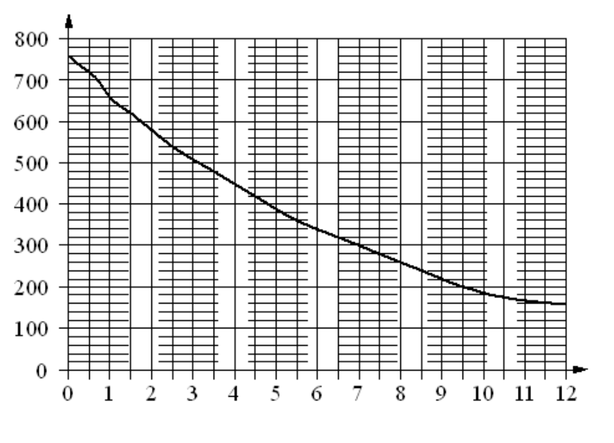 На графике изображена зависимость атмосферного давления от высоты над уровнем моря. На горизонтальной оси отмечена высота над уровнем моря в километрах, на вертикальной — давление в миллиметрах ртутного столба.