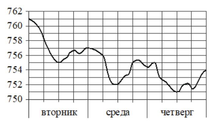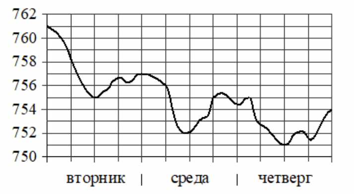 На рисунке показано изменение атмосферного давления в течение трёх суток. По горизонтали указаны дни недели, по вертикали — значения атмосферного давления (в миллиметрах ртутного столба).