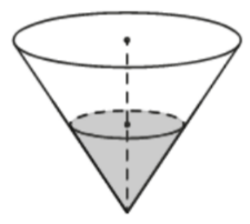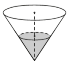 В сосуде, имеющем форму конуса, уровень жидкости достигает 1/2 высоты. Объём жидкости равен 15 мл. Найдите объём сосуда. Ответ дайте в миллилитрах
