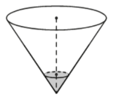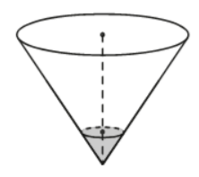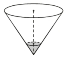 В сосуде, имеющем форму конуса, уровень жидкости достигает 1/4 высоты. Объём сосуда равен 6720 мл. Найдите объём налитой жидкости. Ответ дайте в миллилитрах