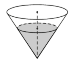 В сосуде, имеющем форму конуса, уровень жидкости достигает 1/2 высоты. Объём жидкости равен 15 мл. Найдите объём сосуда. Ответ дайте в миллилитрах