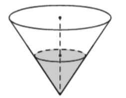 В сосуде, имеющем форму конуса, уровень жидкости достигает 1/4 высоты. Объём сосуда равен 6720 мл. Найдите объём налитой жидкости. Ответ дайте в миллилитрах