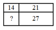 Прямоугольник разбит на четыре меньших прямоугольника двумя прямолинейными разрезами. Площади трёх из них, начиная с левого верхнего и далее по часовой стрелке, равны 14, 21 и 27. Найдите площадь четвёртого прямоугольника.