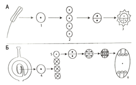 Каким номером на рисунке обозначен зрелый женский гаметофит?