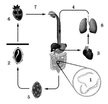Каким номером на рисунке обозначен источник заражения аскаридозом?