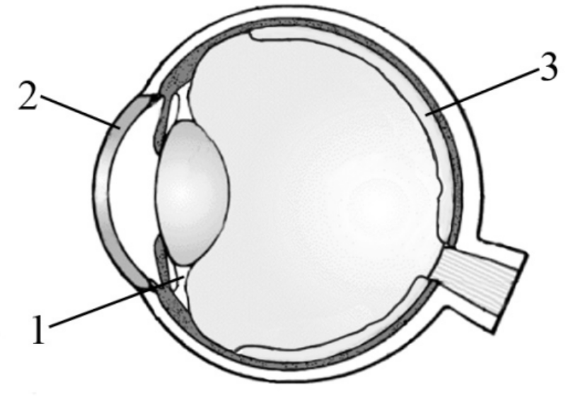Какие структуры глаза человека обозначены на рисунке цифрами 1, 2, 3? Какие функции они выполняют?