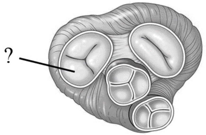 Какая структура сердца человека обозначена на рисунке вопросительным знаком? Какова особенность её строения и где она расположена? В чём заключается функция этой структуры? В каких состояниях находится данная структура в момент систолы желудочков и момент общей диастолы сердца?
