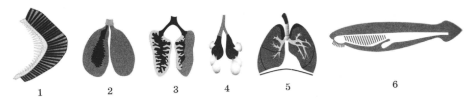 Установите соответствие между характеристиками и органами дыхания, обозначенными на рисунке цифрами 1, 2, 3, 4: к каждой позиции, данной в первом столбце, подберите соответствующую позицию из второго столбца.