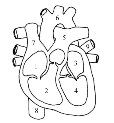 Каким номером на рисунке обозначена лёгочная вена человека?