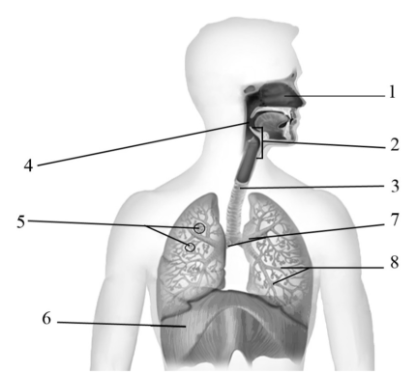 Какой цифрой на рисунке обозначена структура, разделяющаяся на два бронхиальных дерева?