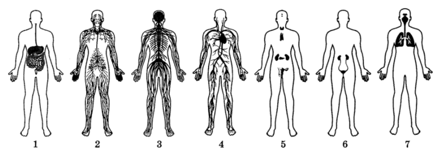 Установите соответствие между характеристиками и системами органов, обозначенными на рисунке выше цифрами 1, 2, 3: к каждой позиции, данной в первом столбце, подберите соответствующую позицию из второго столбца.