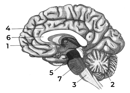Какой цифрой на рисунке обозначен продолговатый мозг?