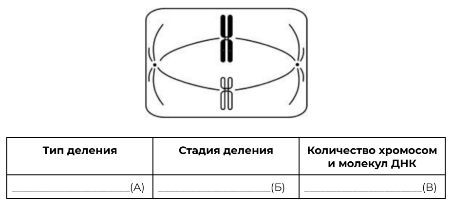 Рассмотрите рисунок с изображением схемы деления исходной диплоидной клетки. Заполните пустые ячейки таблицы, используя а элементы, приведённые в списке. Для каждой ячейки, обозначенной буквой, выберите соответствующий элемент из предложенного списка.