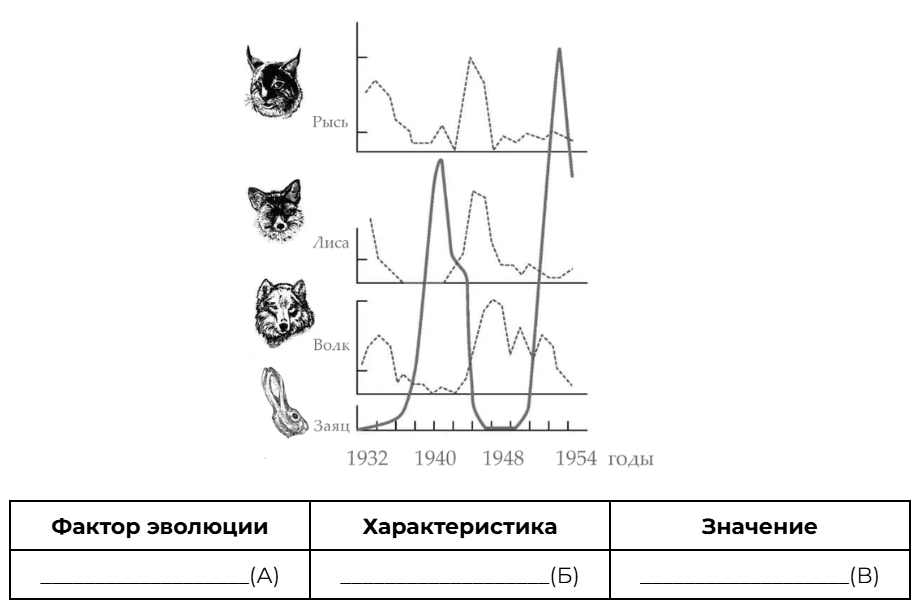 Рассмотрите рисунок, иллюстрирующий отношения «хищник — жертва». Заполните пустые ячейки таблицы, используя элементы, приведенные в списке. Для каждой ячейки, обозначенной буквой, выберите соответствующий элемент из предложенного списка.
