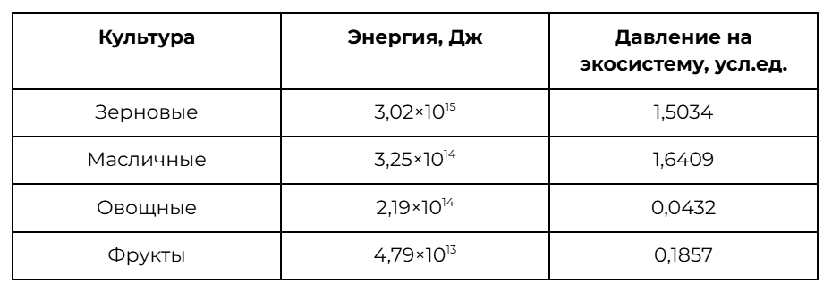 Проанализируйте таблицу «Энергозатраты на выращивание сельскохозяйственных культур и давление этого производства на экосистему в одной из провинций Китая».