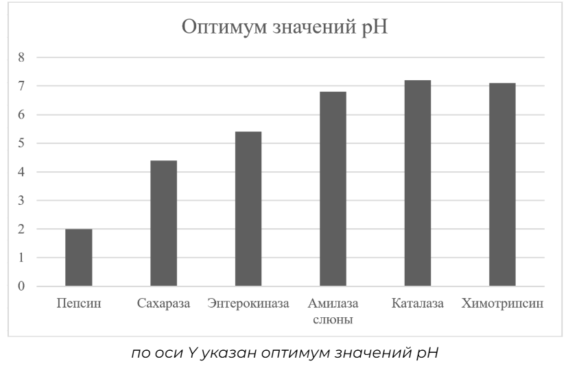 Проанализируйте диаграмму «Оптимумы значений рН для некоторых ферментов».