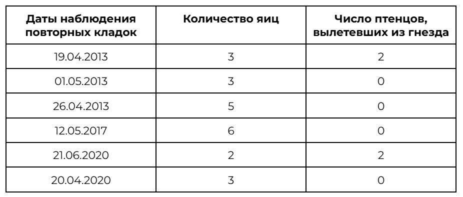 Проанализируйте таблицу «Успешность размножения ушастой совы в повторных кладках» (повторная кладка — вторая кладка яиц за сезон).