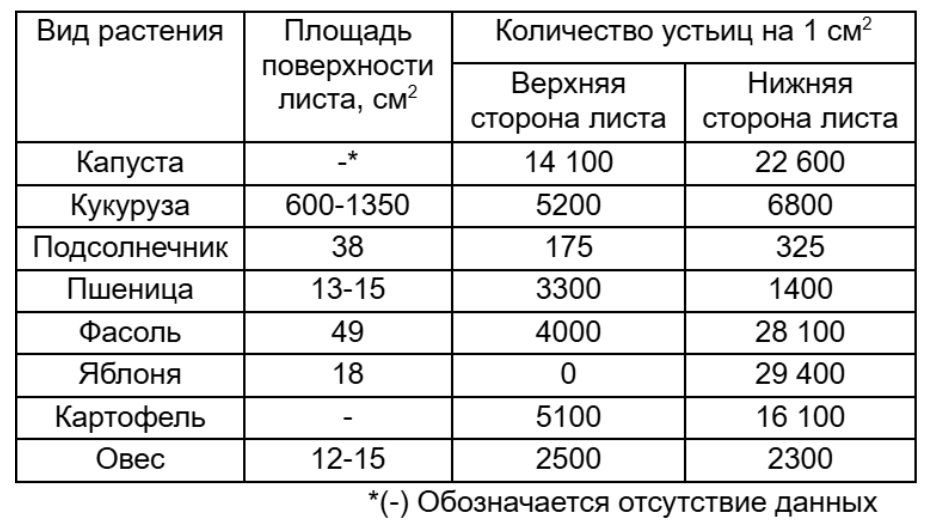 Проанализируйте таблицу «Некоторые характеристики листовых пластинок цветковых растений».