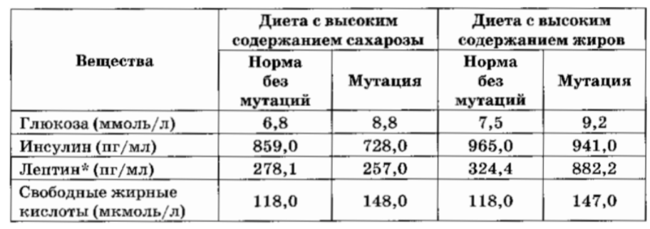 Проанализируйте таблицу «Влияние мутации СD24 на липидный и углеводный обмен у мышей».