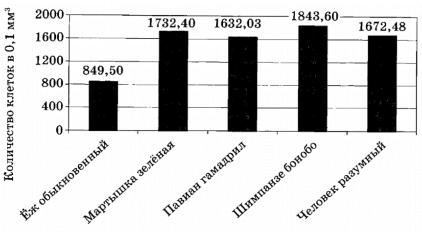 Проанализируйте диаграмму, на которой представлена плотность нервных клеток в головном мозге разных видов млекопитающих.