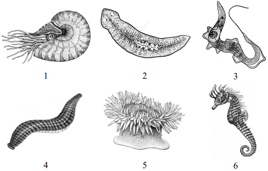 На рисунке под каким номером изображён представитель типа Хордовые?