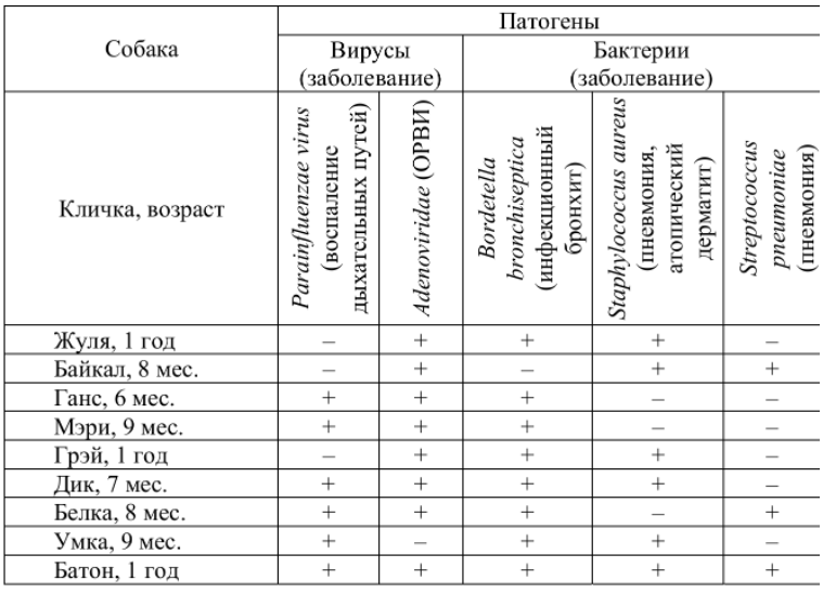 Проанализируйте таблицу «Видовой состав микроорганизмов и вирусов при респираторных инфекциях собак».