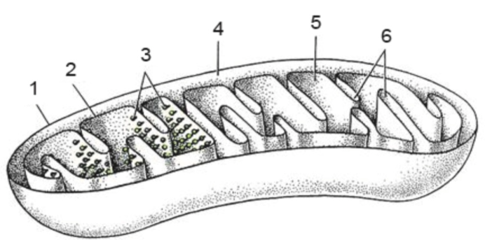 Выберите три верно обозначенные подписи к рисунку, на котором изображено строение одного из органоидов клетки.