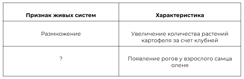 Рассмотрите таблицу «Признаки живых систем». Запишите в ответе пропущенный термин, обозначенный в таблице вопросительным знаком.